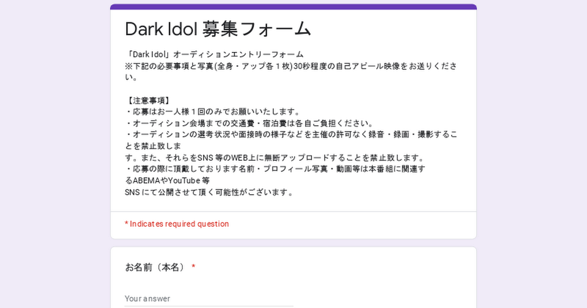 DarkIdolオーディション応募資格