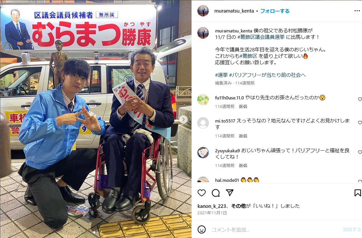 こちらのインスタ画像はむらけん(松村健太)さん。